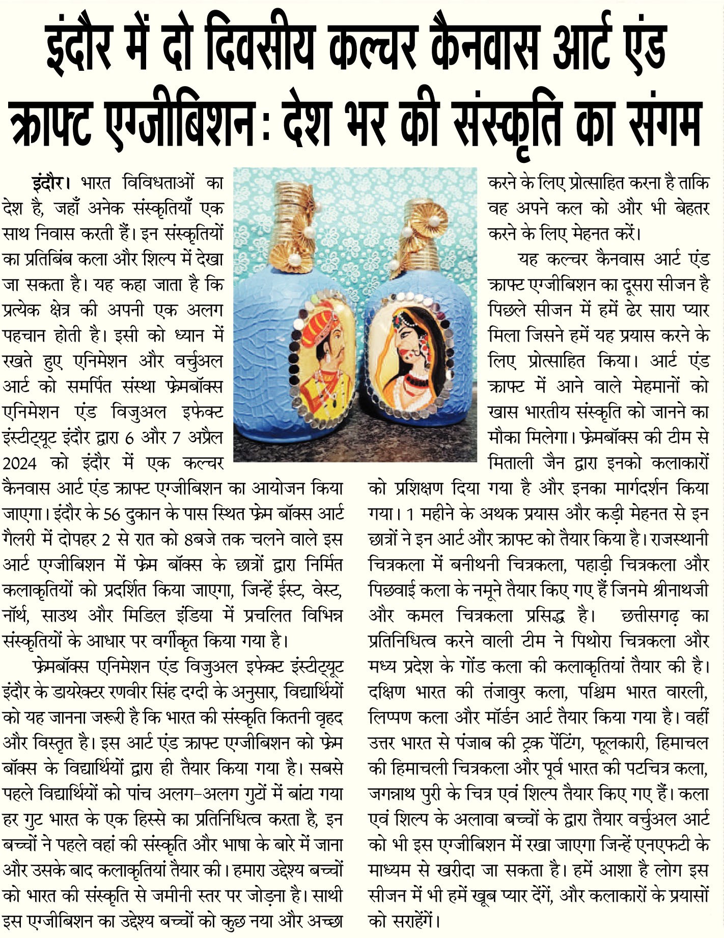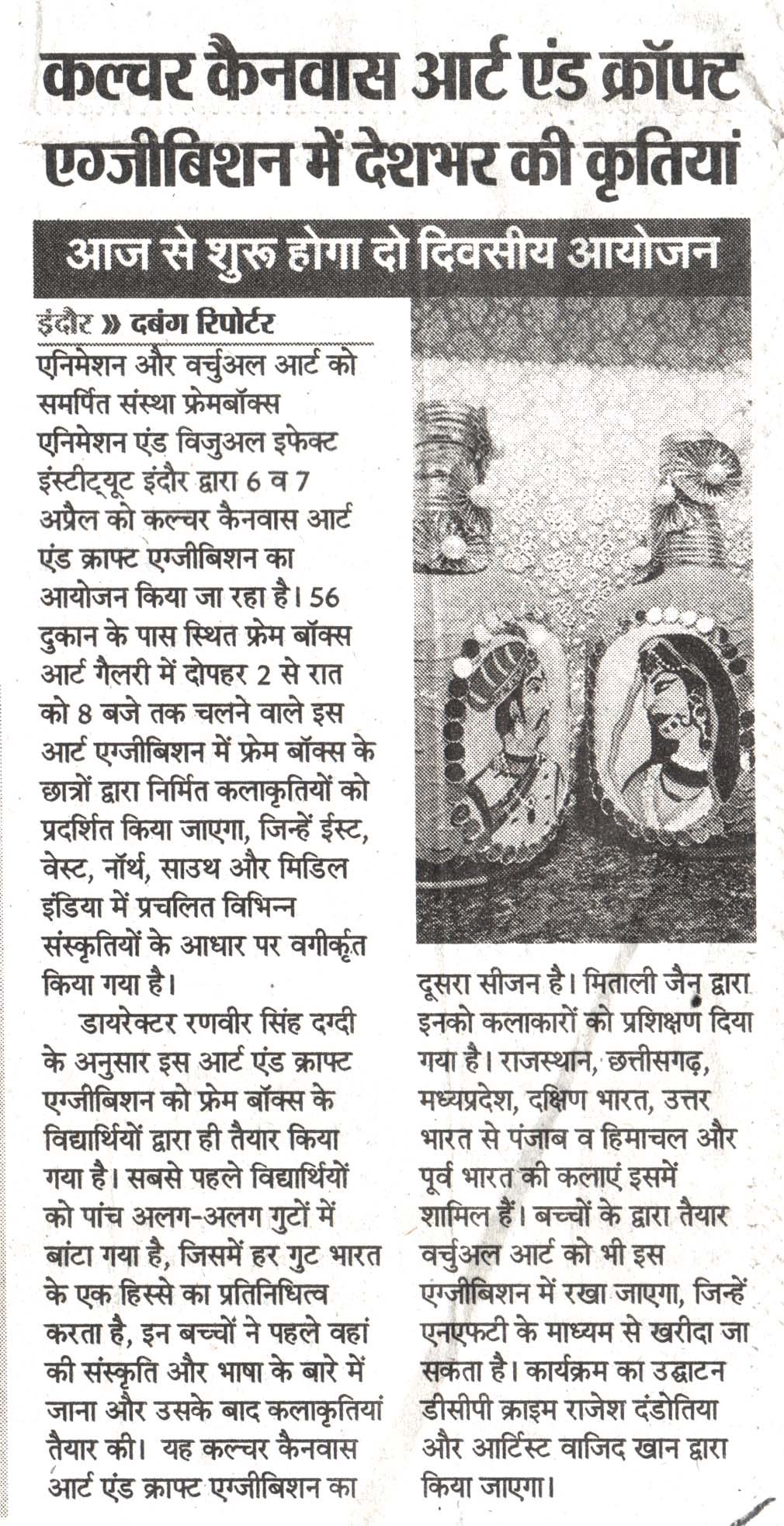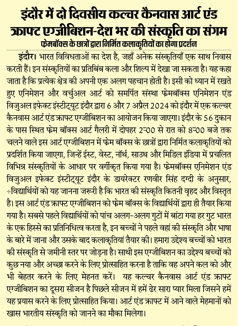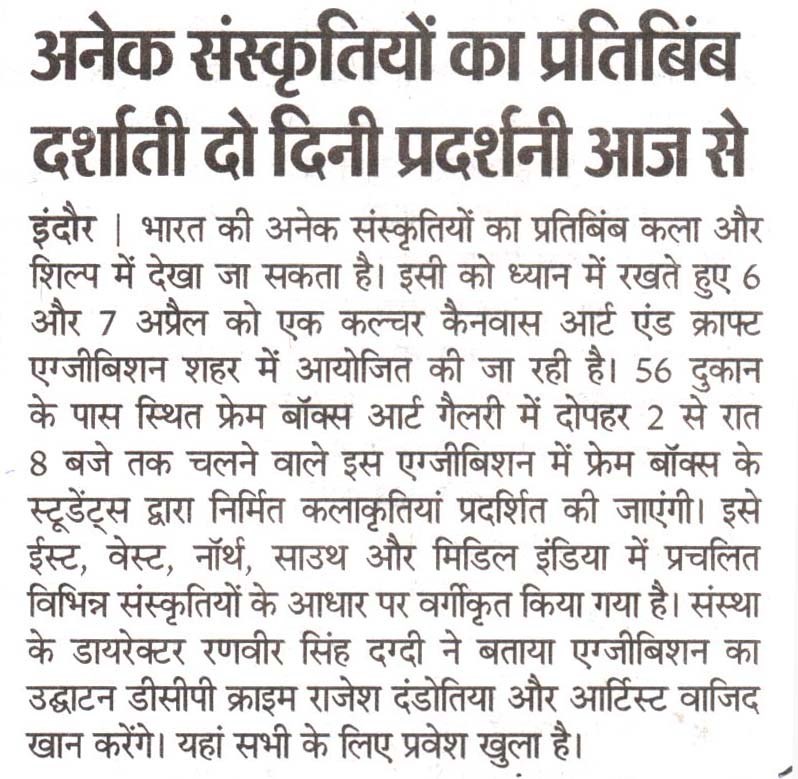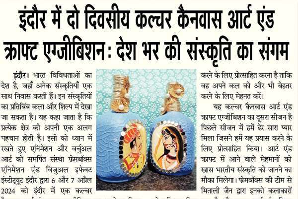 Frameboxx Indore recently concluded its much-anticipated Culture Canvas Art & Craft Exhibition, Season 2, leaving attendees awestruck with its celebration of heritage and creativity. From April 6th to 7th, the event transformed Frameboxx at 56 Dukaan into a vibrant spectacle, showcasing the talent and ingenuity of local artists.